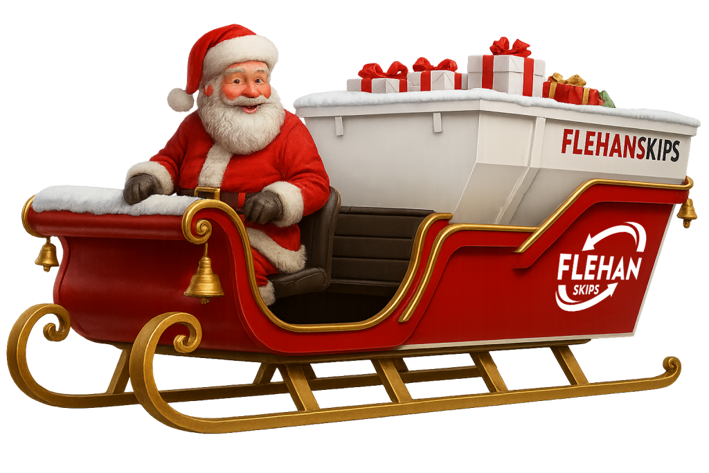 Skip bins for general waste, including household rubbish, furniture, plastics, paper, and mixed packaging materials.
